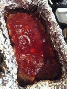 Glazed Meatloaf from Allrecipes.com and Accordion Potatoes with Chive Butter from Martha Stewart’s Everyday Food. Again, I can’t find the recipe online, but it was in this month’s issue (Nov 2012, Page 92). I’ve seen Accordion Potato recipes before but haven’t attempted them. You’re supposed to not cut all the way through the potatoes as you slice them crossways, so as they bake they split open – like an accordion – but alas… I cut through a couple of slices. As I was working away I sorta grumbled to myself, ‘Geez…I suck at…’ – C cut in and said, ‘What? Following recipes?’