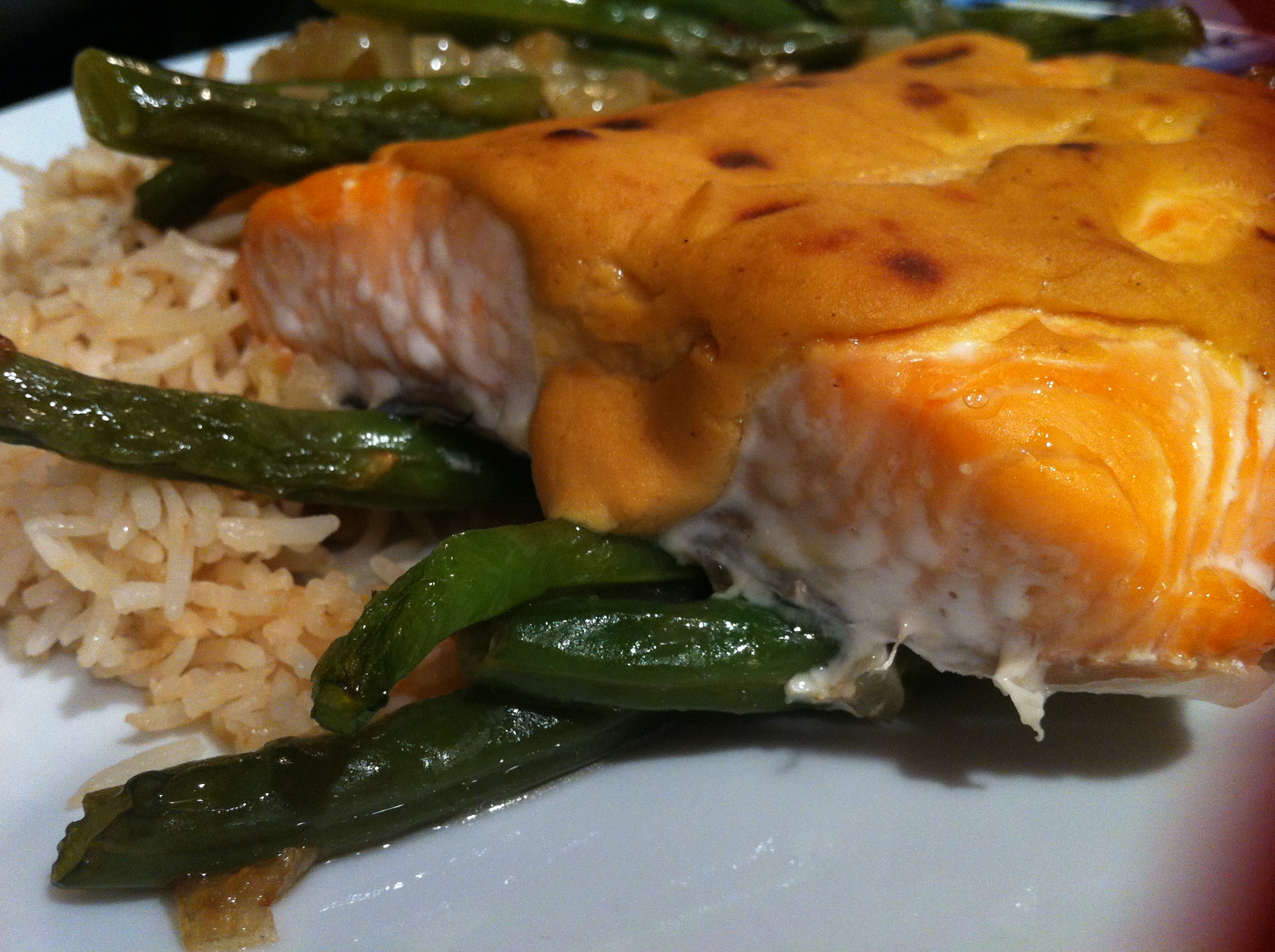 Conclusion: The green beans were REALLY GOOD, the dijon overpowered the salmon. Perhaps it would’ve been better with grainy mustard, but as C said – there are a million mustard + fish recipes online. Do you really wanna try this one again? Maybe…we’ll see.