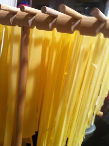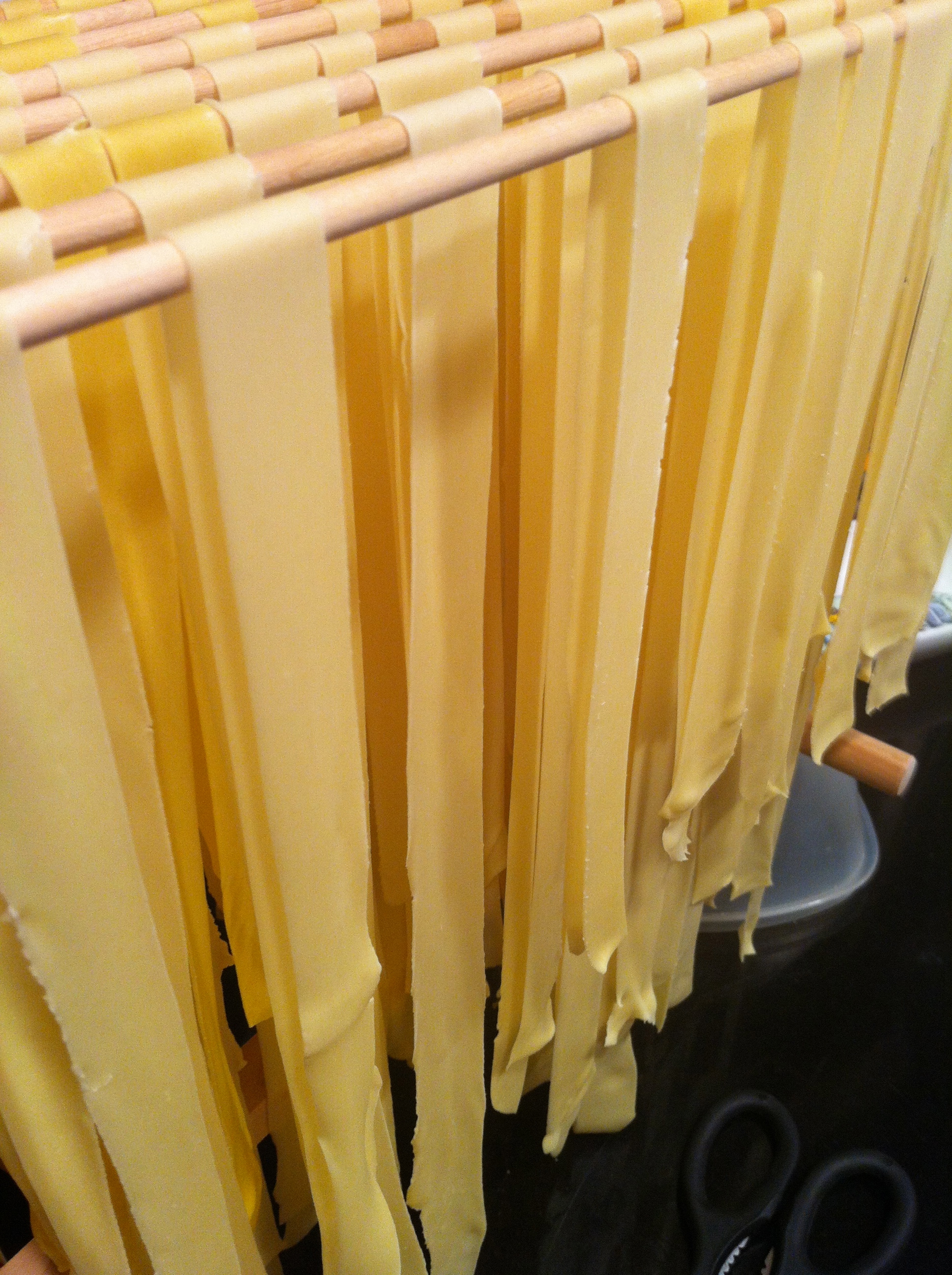 My mom still laughs at how I had all the spoons in the kitchen balanced sideways on wine bottles so I could spread out the pasta and let it dry!
