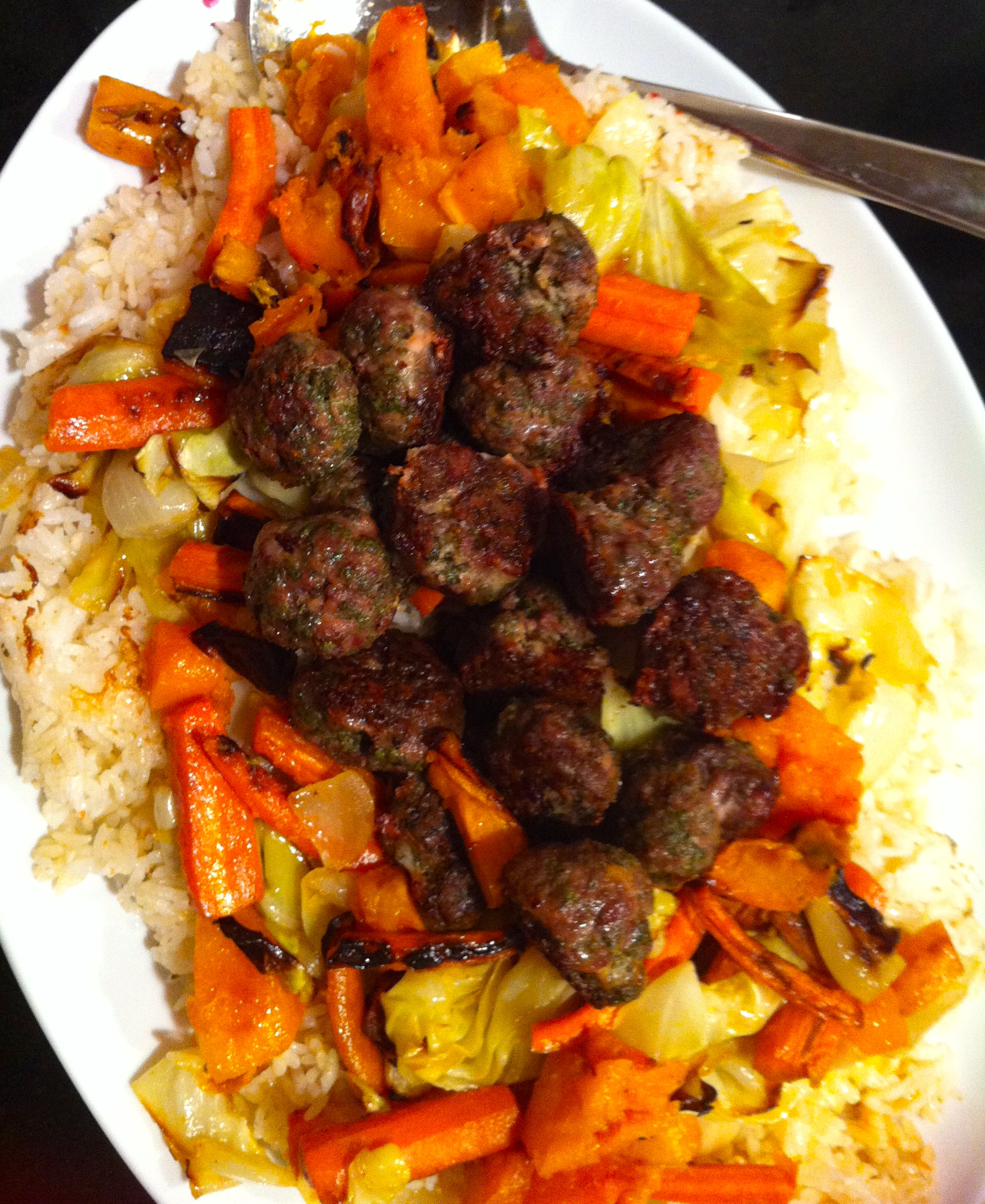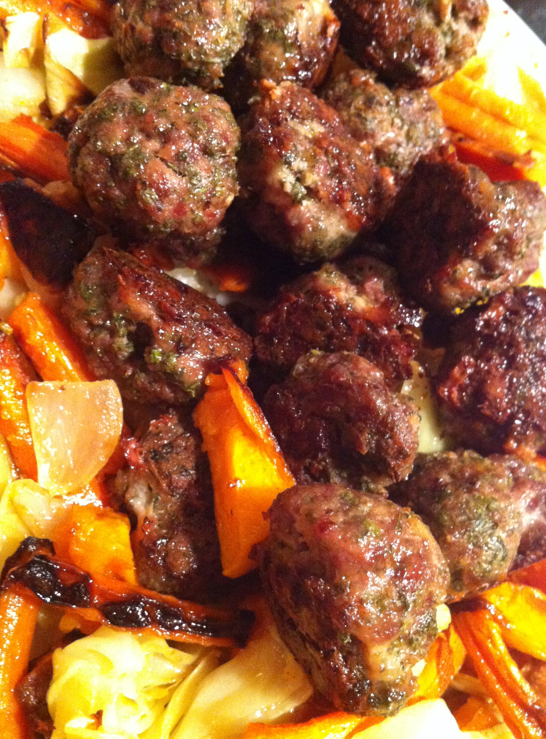 **I really only made the meatballs from this recipe. I roasted them on a tinfoil lined baking sheet at 450 for about 25 minutes.
