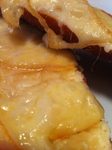 Today I made Grown-up Cheese Toast for lunch. I make a baby version quite a lot. I make toast, cover with cheese, and re-toast it. Simplicity in and of itself. Babies gobble it up. Today I wanted a fast, simple, light lunch and grabbed the end of a baguette we had laying around. I split it open, slathered both sides with a Tablespoon of Mayo, and a T of my father’s homemade horseradish on top of that, then layered in beautiful slices of Raclette – a terrific melting cheese. I popped everything into the toaster and – oh my! It was a beautiful thing. *yum*