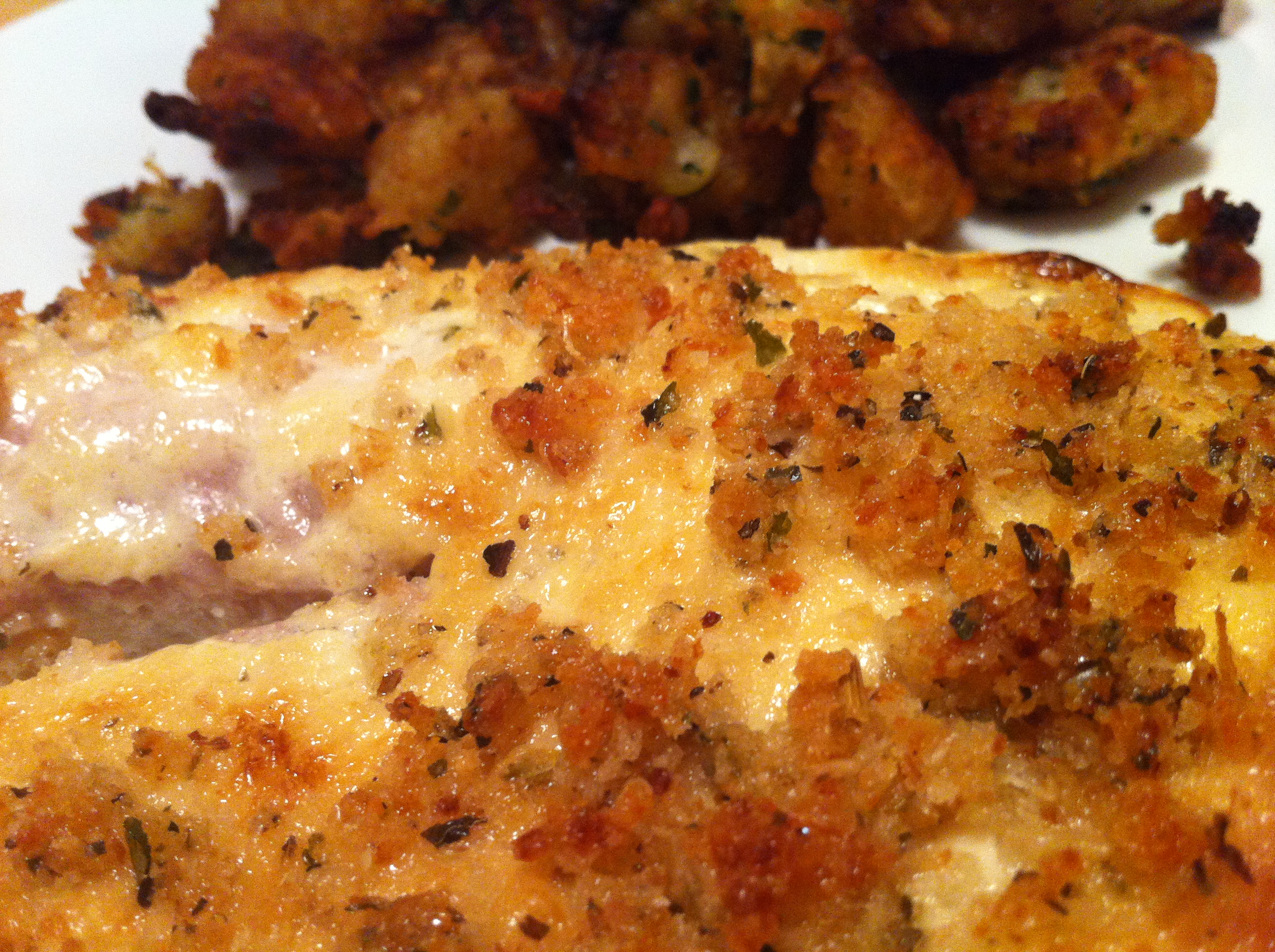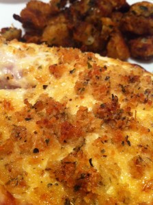 4- Form into 4 patties and coat with remaining breadcrumbs – WAIT! THAT’S IT! We didn’t do this step! Our extra breadcrumbs are in a baggie in the fridge awaiting another recipe. We BOTH totally missed reading this step. Crap. THAT’s probably why we weren’t blown away by this recipe….Aaaaaah. Ok. Learn from our mistakes.