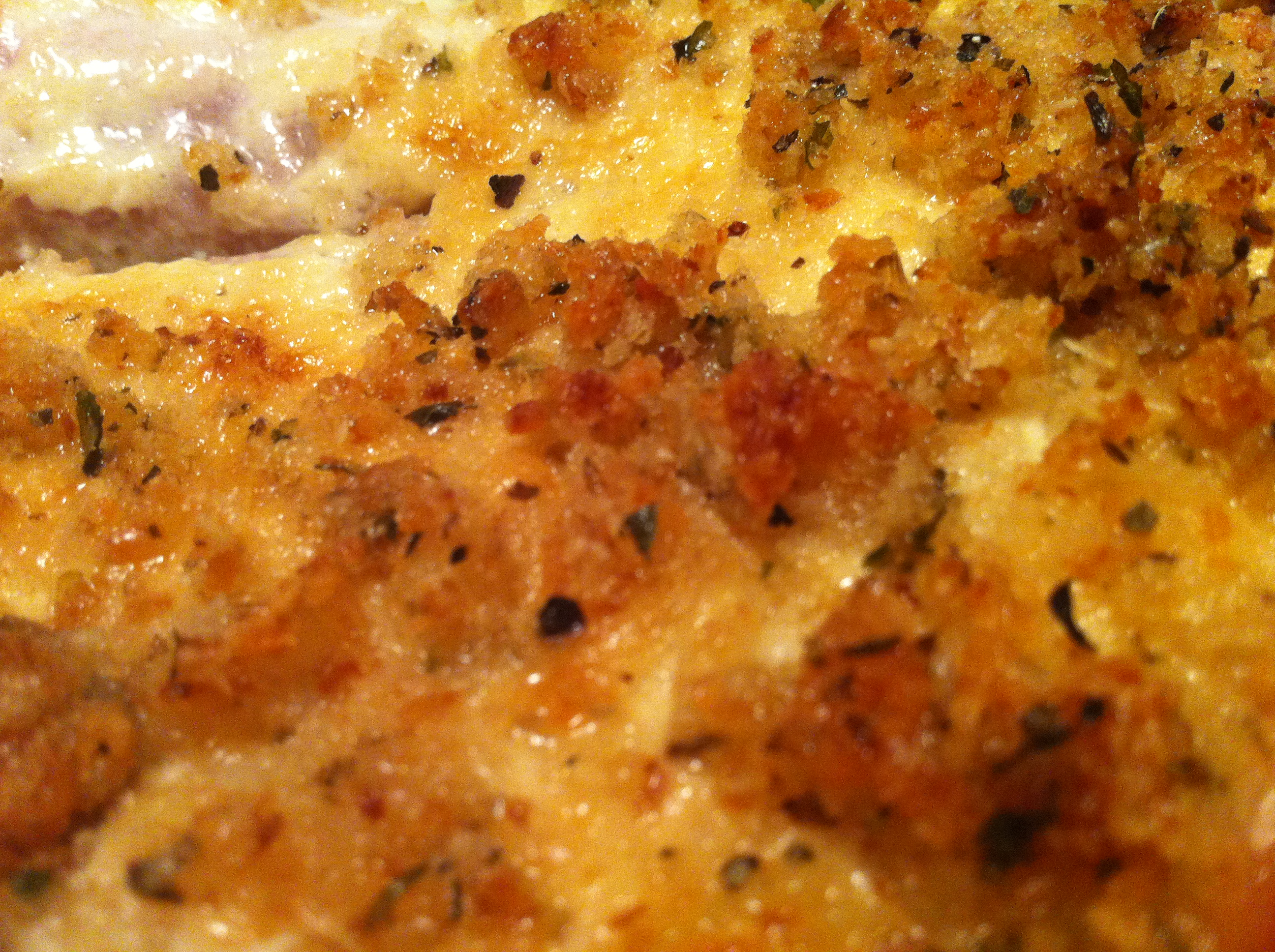 3- In a small bowl, combine the bread crumbs, butter and remaining parmesan cheese; sprinkle over fillets.