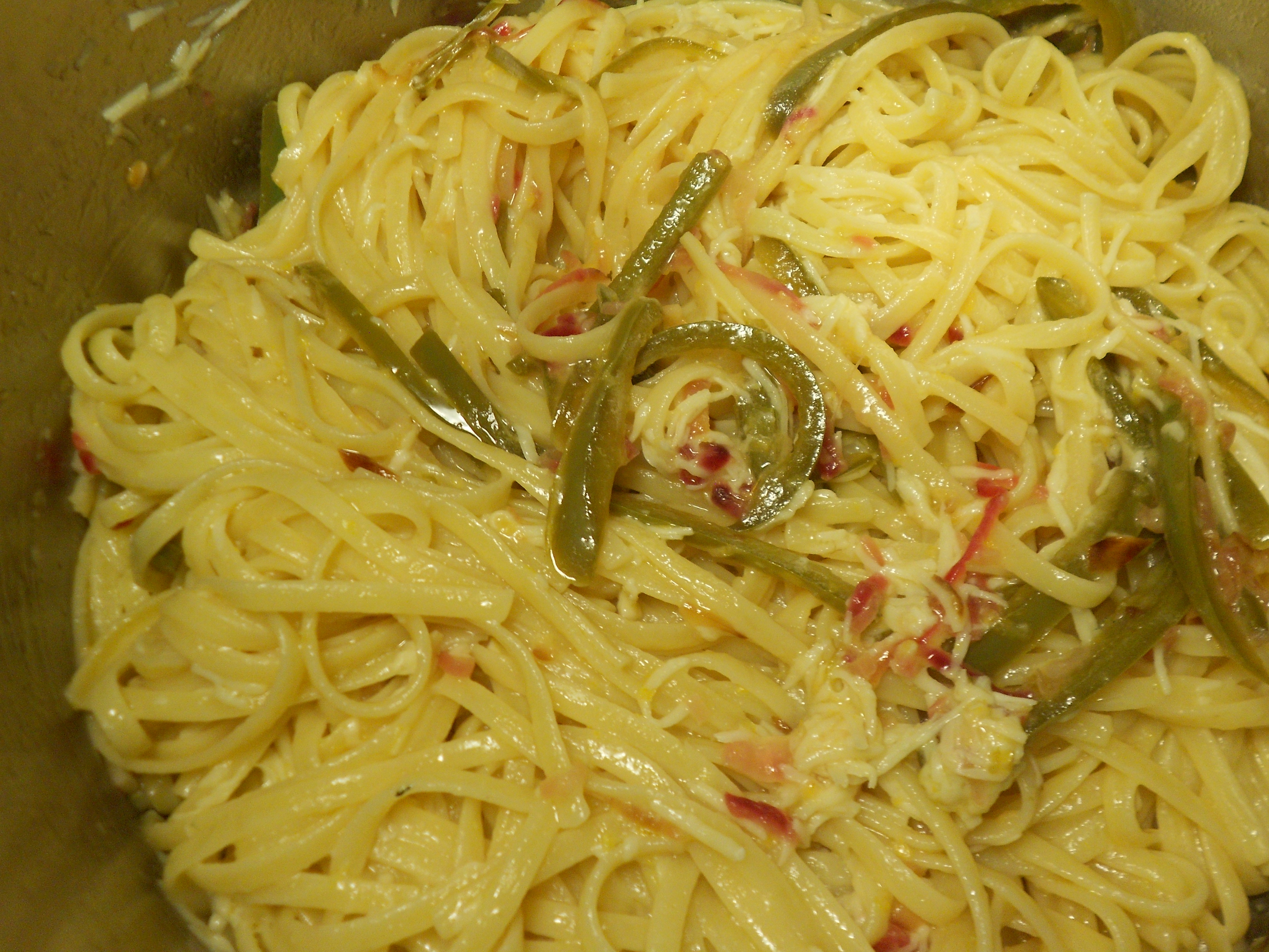 Tonight we had Mario Batali’s Fettuccine with Lemon, Hot Peppers and Pecorino Romano… but with Linguine and Locatelli. And no. Those do not count as substitutions. Because I said so.