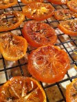 When they were done I laid the slices and strips out on a cooling rack set over a baking sheet lined with wax paper (you need it for the clean up) and let them dry overnight.