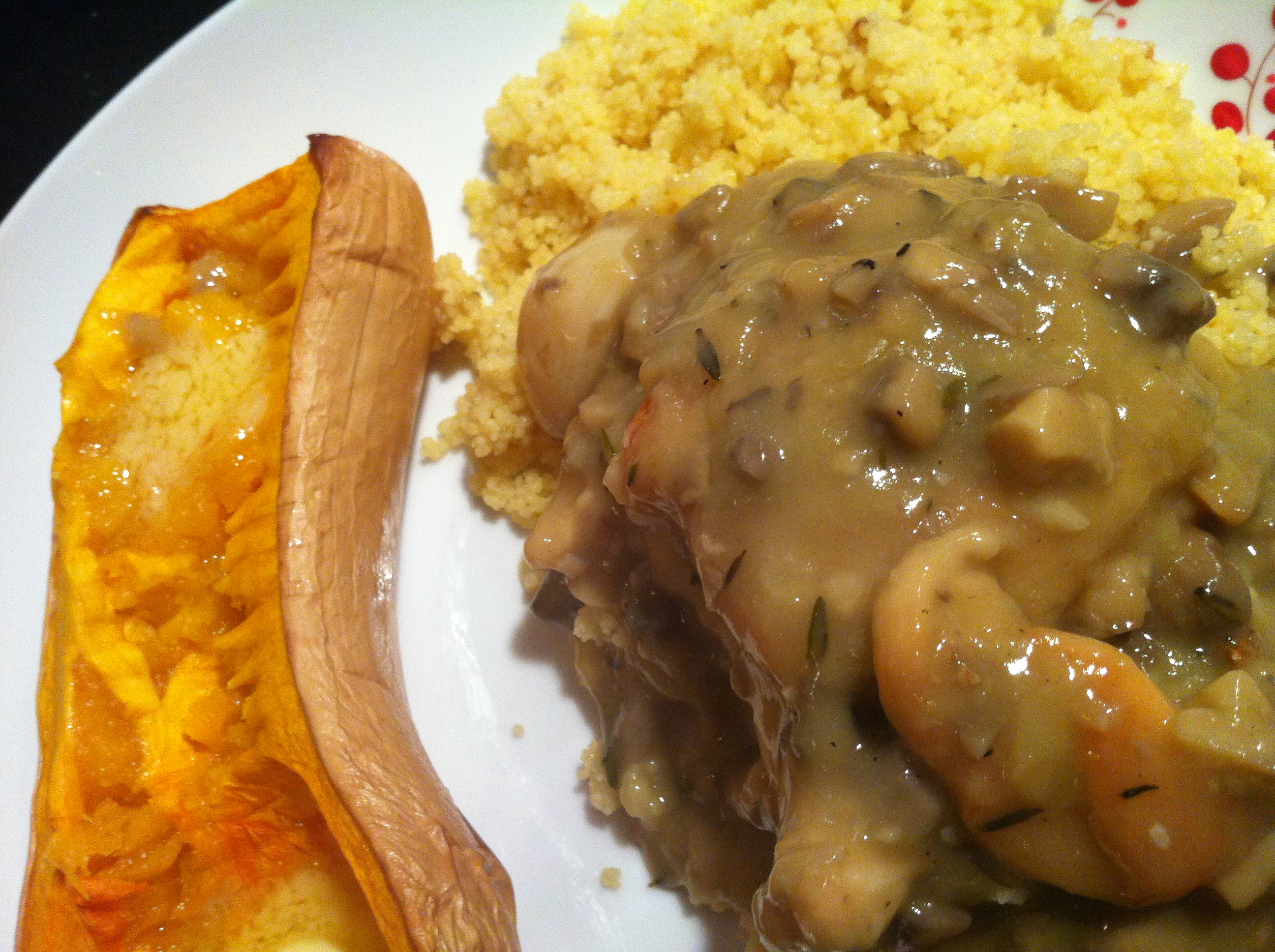 For dinner tonight I made Ina Garten’s Chicken with Wild Mushrooms… but with button mushrooms, not wild. No. I don’t count that as a real substitution. Nuh uh.