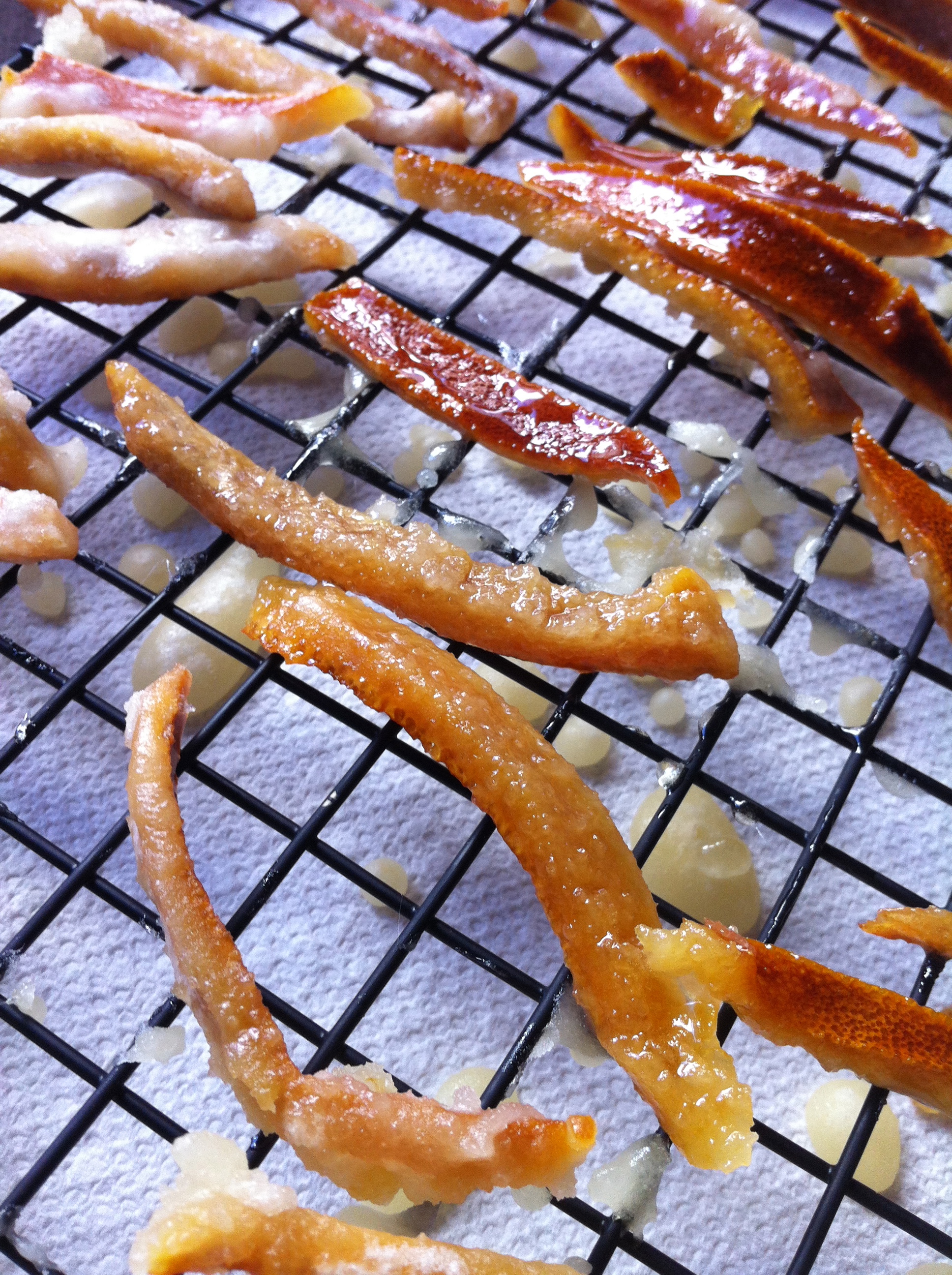 I feel like just about everything I touched today turned out horribly horribly wrong. I messed up the candied orange peels (they really shouldn’t look like they’re tempura battered). I don’t know what the hell I did wrong with the macaroons (they were supposed to be a birthday gift for our babysitter). Dinner was so vile I wish wish WISH we’d ordered a pizza. Seriously – I scraped everything back into the pot and dumped the ENTIRE thing into the garbage.
