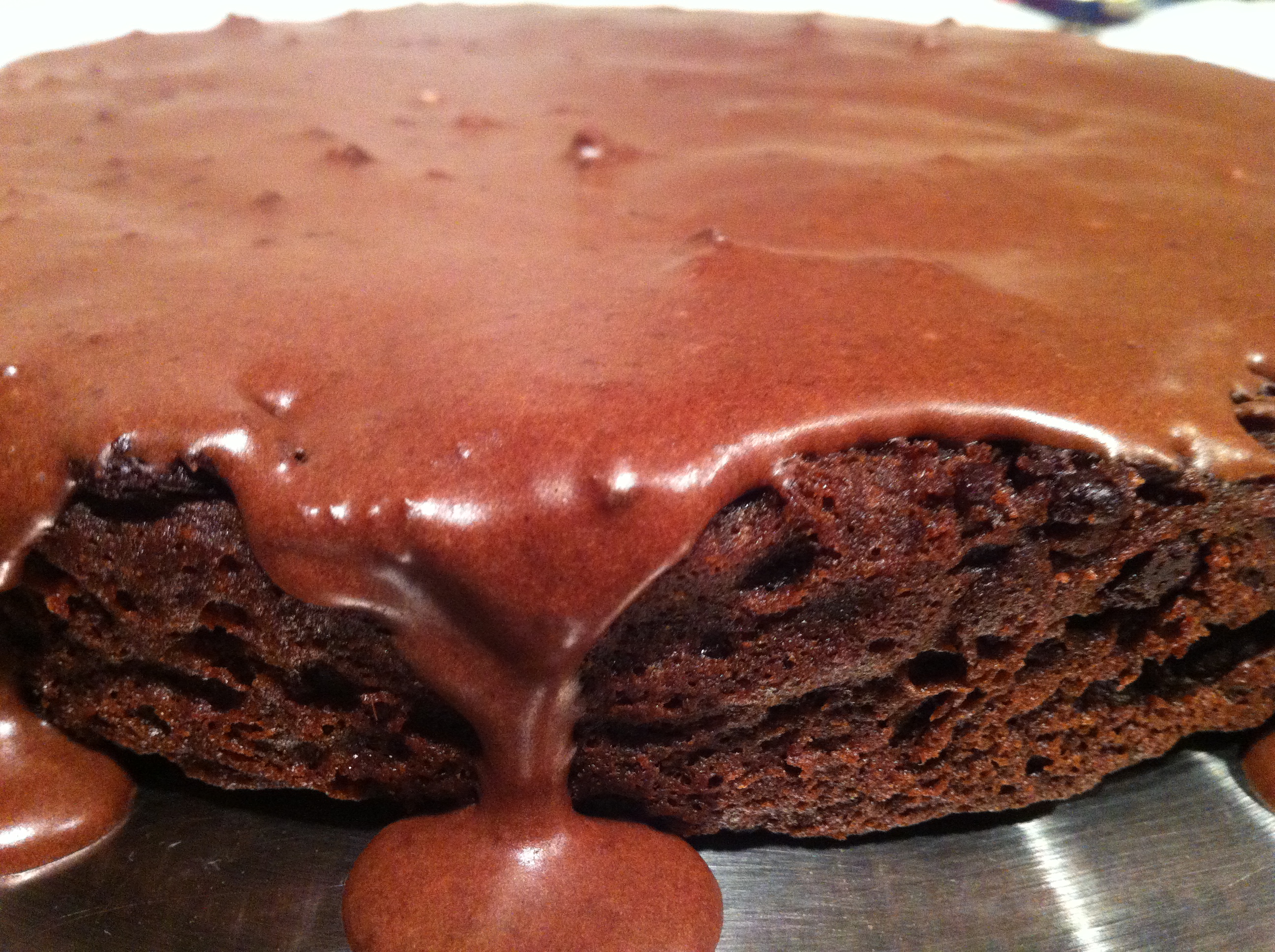 Oh, and it turns out I had enough batter to make a small cake too. So I drizzled that with a chocolate glaze. Even though the picture isn’t stellar, it’s a yummy cake.