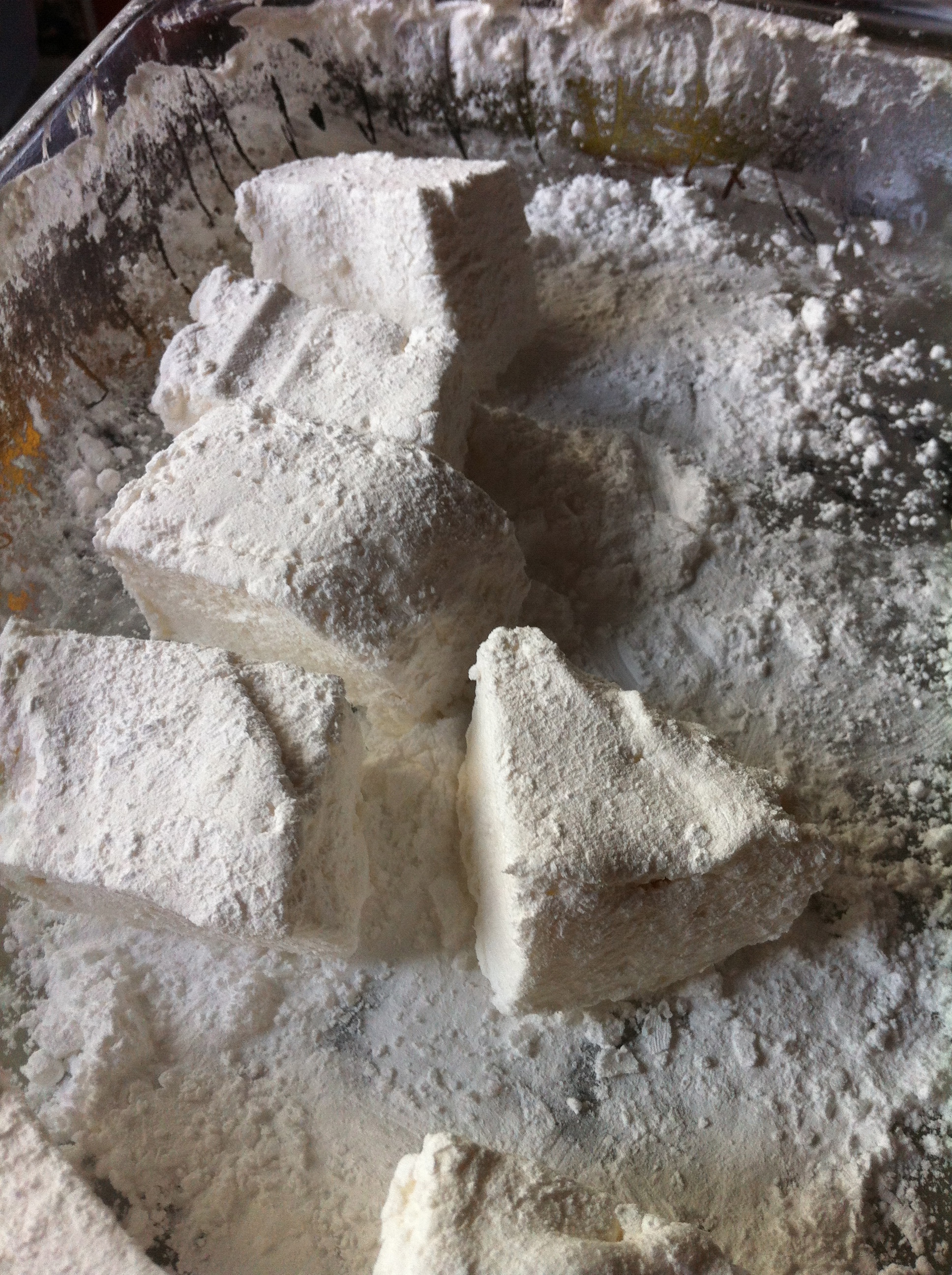 This morning, while the babies took their nap, E and I decided to make marshmallows. We thought they’d be excellent either as an afternoon snack or perhaps as dessert after dinner with Grandma & Poppa.