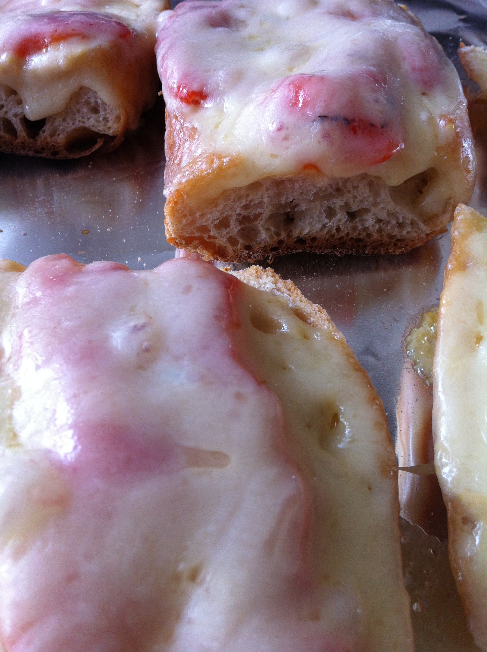 2 3″ hunks of bread, cut in half lengthwise **Today I used an Italian loaf.