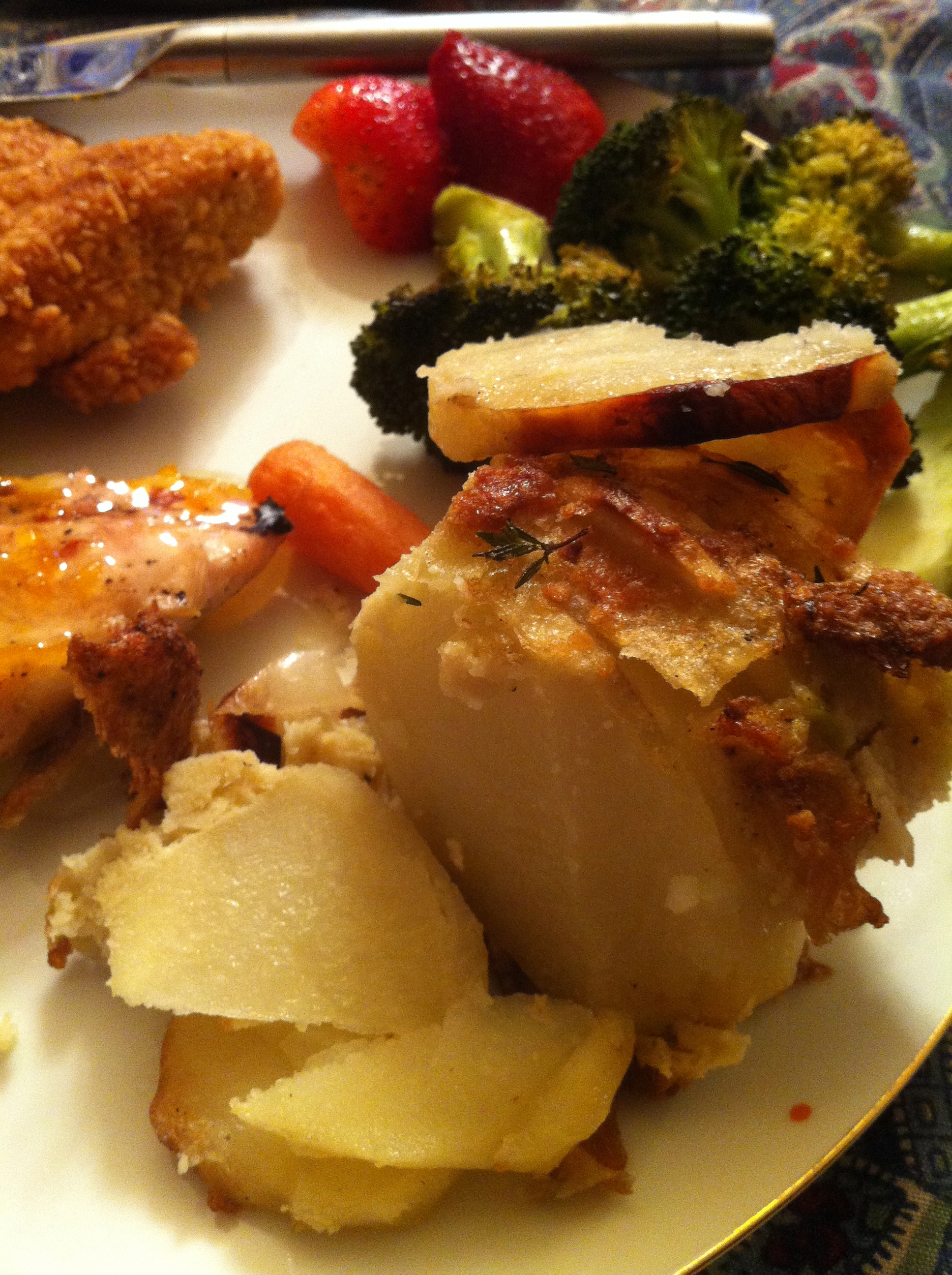 End Results: Desserts disappeared. Uncle Jeffrey like the Haroset enough for it to be a stand-alone dessert. I had seconds of the Gratin with my dinner – though C thought it just ok. He thought using the word Kugel implied something more traditional, less…well, sliced potato-ey. And no. He couldn’t figure out how to elaborate further.
