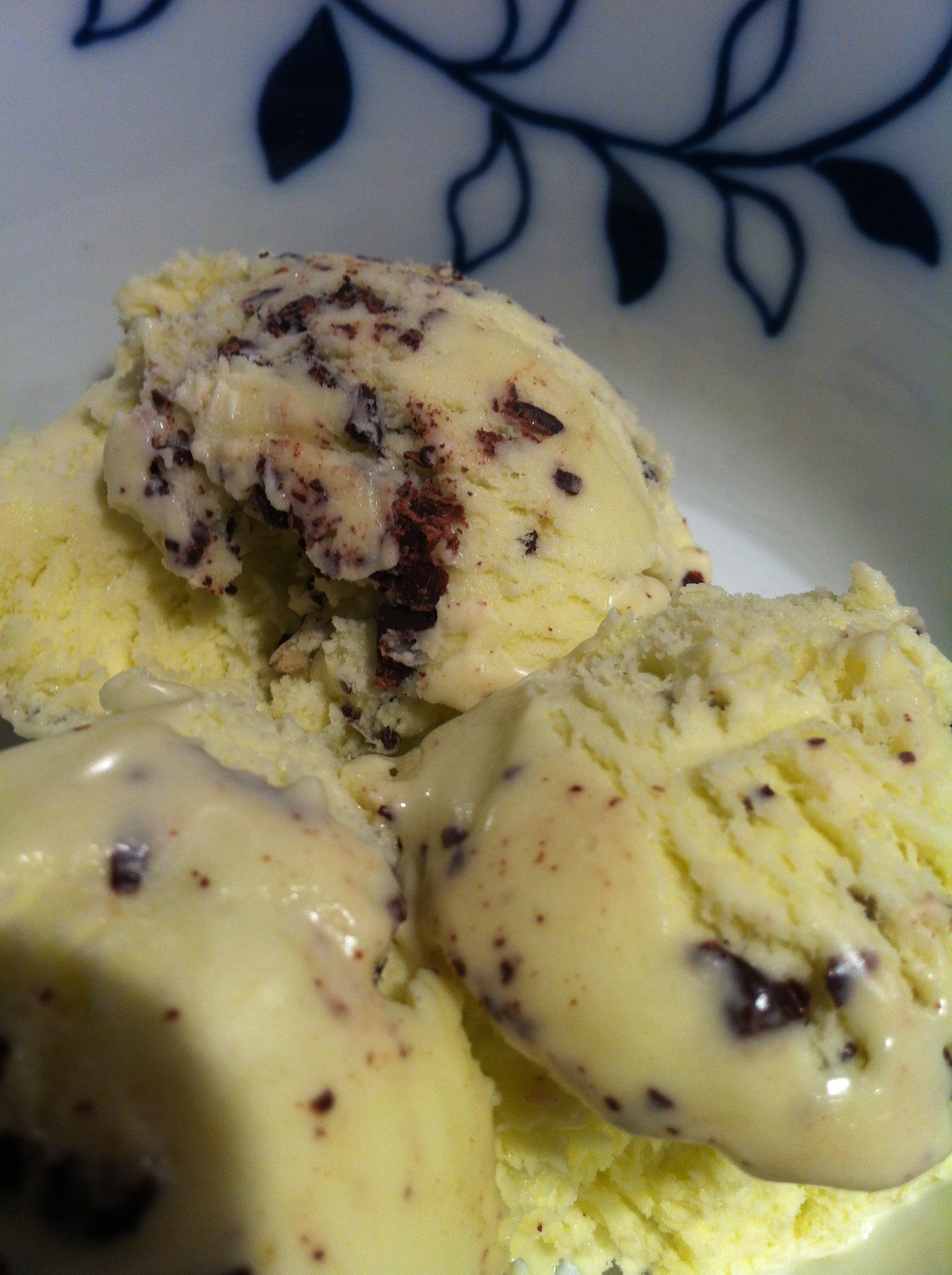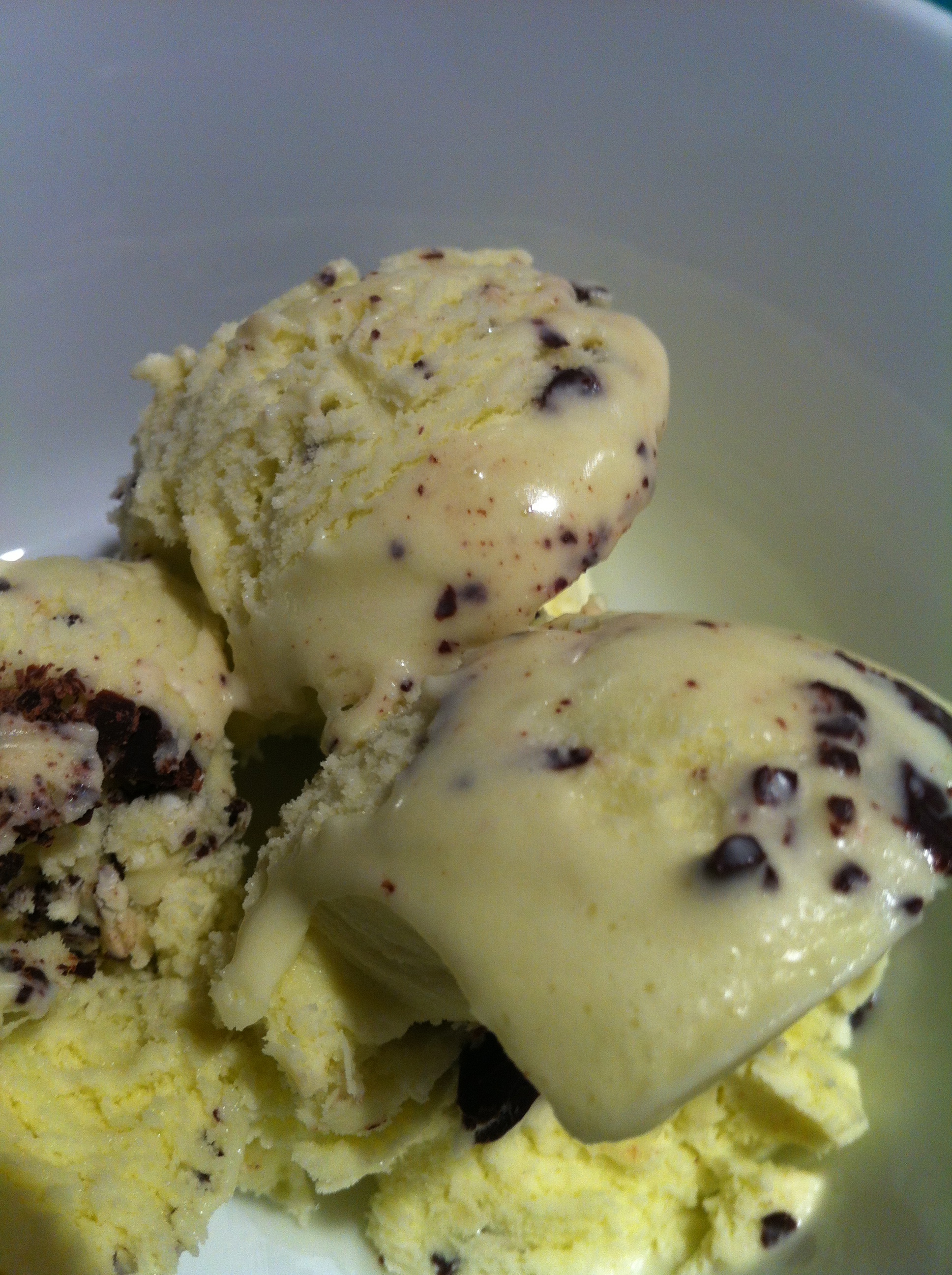 8- Refrigerate the mixture thoroughly, preferably overnight (**I think I had mine chilling for 3+ hours), then freeze it in your ice cream maker according to the manufacturer’s instructions.