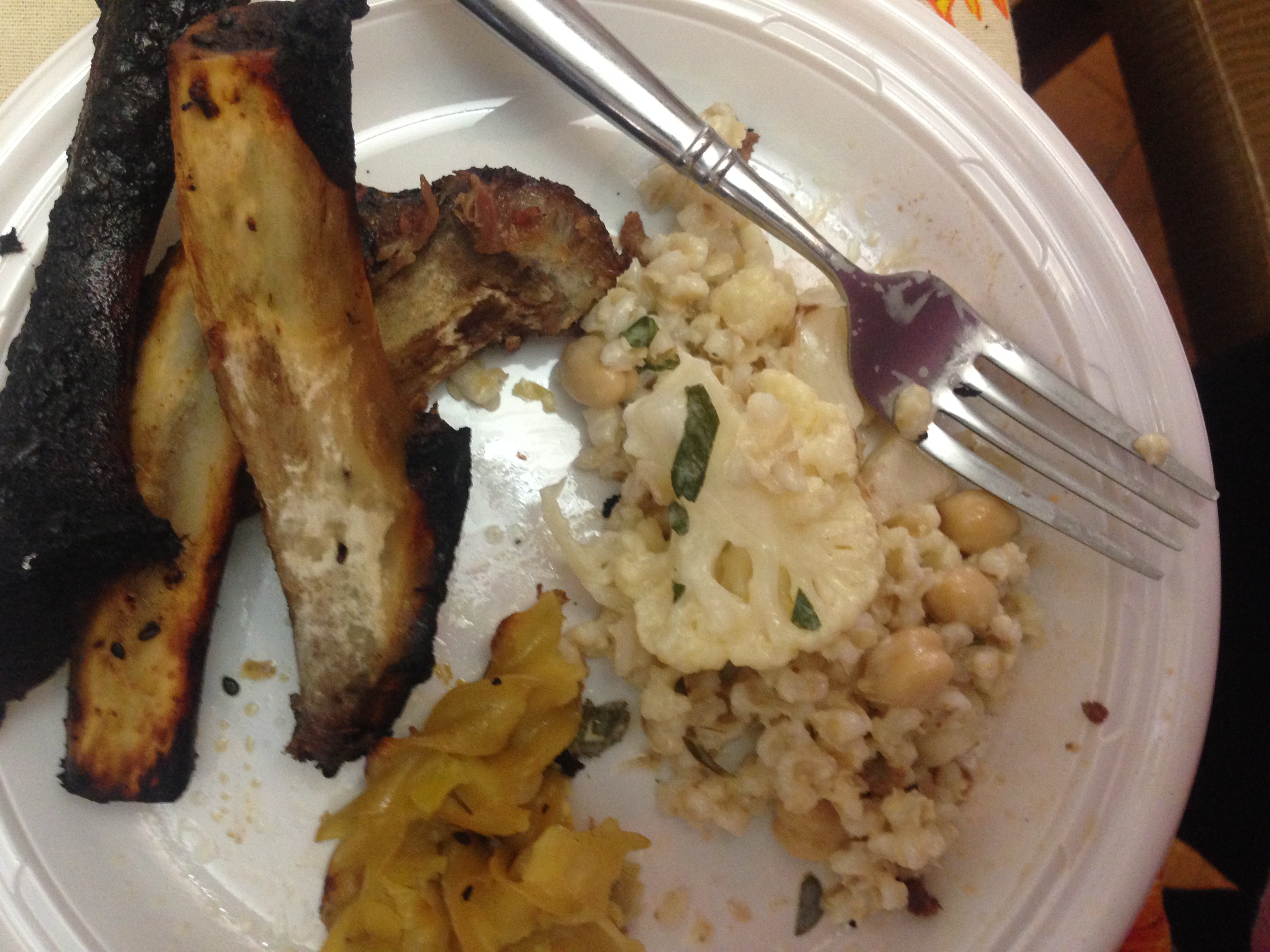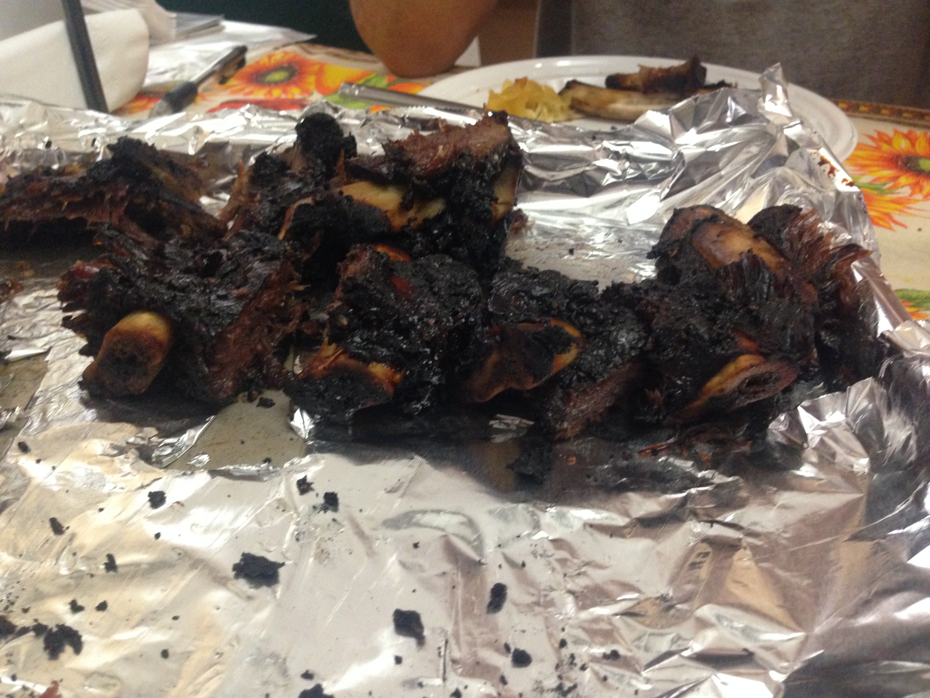 That sounds delicious, right? The ribs were marinated in this soy sauce/sugar/garlic/onion/sesame oil/sesame seeds mixture, then oven baked for hours, then finished on the BBQ.